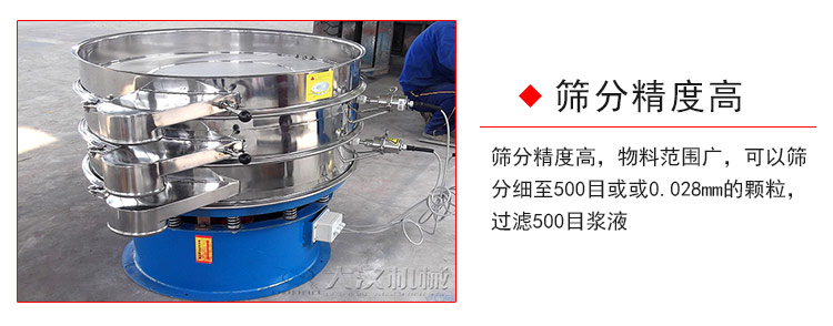 1、篩分精度高,物料范圍廣,可以篩分細至500目或或0.028mm的顆粒,過濾500目漿液;