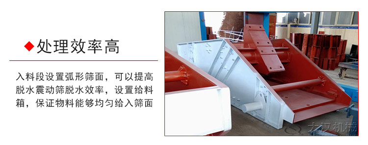 4、入料段設置弧形篩面,可以提高脫水震動篩脫水效率,設置給料箱,保證物料能夠均勻給入篩面;