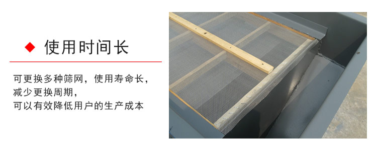 直線振動篩的母網完全支撐細網,因此細網可獨得較長之壽命,而降低細網耗材使用,若長時間,可降低諸多生產成本,并且直線振動篩可更換多種篩網,使用壽命長,減少更換周期,可以有效降低用戶的生產成本。