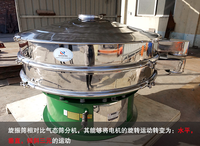 旋振篩相對比氣態篩分機,其能夠將電機的旋轉運動轉變為:水平,垂直,傾斜三元的運動。其不僅提高了篩網的利用率而且,調節上,下兩端的相位角,使得物料在篩網上的運動軌跡發生變化,從而使紅薯淀粉可以進行更加精細的篩分。